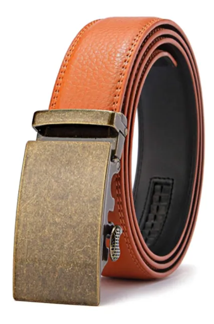 Genuine Leather belt, Exaxt fit by Cutting for needed size, Width 35MM, 1 3/8" EASY TO USE: CREATIVE EFFORTLESS SOLUTION, lifting the front-side of buckle to get the belt sliding through, and releasing to lock the belt, completely simple. Size Adjustalbe: Easy to customize the belt size, just need to remove the belt buckle, and cut the strap at needed size. To avoid useless of too short, just buying a bigger size. DURABILITY: Strap- Genuine Leather, flexible and firm; Buckle - Zinc alloyed with high quality coating for scratch resistance; GIFT IDEA: The stylish belt is packed in an elegant gift box, so nice to give to your family or friend as a gift, and you can buy a little bigger, the user can easily make it short. GUARANTEE: 100% guarantee available. Any product issue makes you dissatisfy with this belt within the GUARANTEE PERIOD, let us know and we will make it right, Full Refund or a Free Replacement, whichever you prefer.