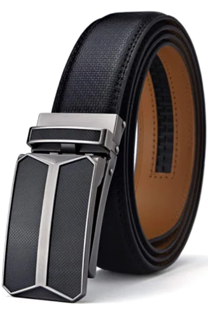 Genuine Leather belt, Exaxt fit by Cutting for needed size, Width 35MM, 1 3/8" EASY TO USE: CREATIVE EFFORTLESS SOLUTION, lifting the front-side of buckle to get the belt sliding through, and releasing to lock the belt, completely simple. Size Adjustalbe: Easy to customize the belt size, just need to remove the belt buckle, and cut the strap at needed size. To avoid useless of too short, just buying a bigger size. DURABILITY: Strap- Genuine Leather, flexible and firm; Buckle - Zinc alloyed with high quality coating for scratch resistance; GIFT IDEA: The stylish belt is packed in an elegant gift box, so nice to give to your family or friend as a gift, and you can buy a little bigger, the user can easily make it short. GUARANTEE: 100% guarantee available. Any product issue makes you dissatisfy with this belt within the GUARANTEE PERIOD, let us know and we will make it right, Full Refund or a Free Replacement, whichever you prefer.