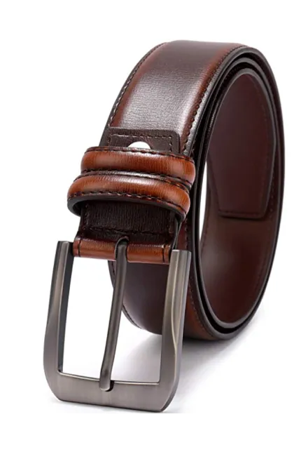 Belt: black, brown, burnt umber, coffee and cognac colors available, genuine leather belt, stitched, 38MM wide, 0.15 inch thick Size: please buy one size larger than your waist size if you want to be flexible. Size 28 30 32 34 36 38 40 42 44 46 48 50 52 54 56 are all available. Men’s plus size belt and even more bigger and taller men will find their fits. Buckle: Silver Brushed Design, size 2.08*2.48 inch in width and length, single prong and zinc alloy.Removable buckle: just unscrew the privet and cut the belt to your size if you happen to order larger or smaller size and cut the belt to fit. Occasions: the belts fit dress, work, pants, jeans, casual daily wear in formal or informal places. Buy with confidence: 365 days free buy return or refund if quality problem occurs. Just contact seller first for best service.