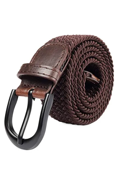 SIZE and COLOR: 27 colors with Matching Leather Tip and Belt, Waist Size: X-Small (24"-26"), Small (28"-30"), Medium: (32"-34"), Large: (36"-38"), X Large: (40"-42"), XX Large: (44"-46"), XXX Large:(48"-50") DURABLE: Elegant braid belt with elastic woven Polyester-blend material for strength and flexibility MATERIAL SPEC: strap is 1.29" Inches (3.3CM) wide and made High Stretch Bend Thread QUALITY BUCKLE: Gloss Solid Metal buckle fastening / Polyester-blend soft elastic belt Glossed smooth metal head that buckles at any position on the belt for exact fit MATCHING PANTS: Deep solid colors easily match for golf pants, jeans and business casual pants