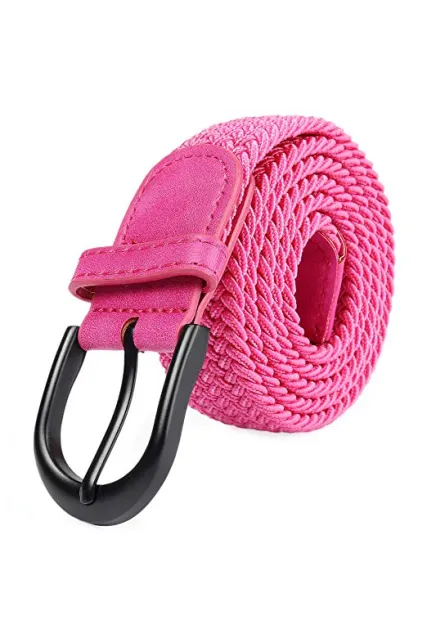 SIZE and COLOR: 27 colors with Matching Leather Tip and Belt, Waist Size: X-Small (24"-26"), Small (28"-30"), Medium: (32"-34"), Large: (36"-38"), X Large: (40"-42"), XX Large: (44"-46"), XXX Large:(48"-50") DURABLE: Elegant braid belt with elastic woven Polyester-blend material for strength and flexibility MATERIAL SPEC: strap is 1.29" Inches (3.3CM) wide and made High Stretch Bend Thread QUALITY BUCKLE: Gloss Solid Metal buckle fastening / Polyester-blend soft elastic belt Glossed smooth metal head that buckles at any position on the belt for exact fit MATCHING PANTS: Deep solid colors easily match for golf pants, jeans and business casual pants