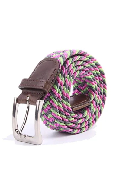Canvas Multicolored Braided Belts Medium fits waist 32 33 34 35 / Large fits waist 36 37 38 39 40 / XL fits waists 41 42 43 44 45 ; Belt Width: 1.3 inch Gloss Solid Metal buckle fastening / Polyester-blend soft stretchy belt 15 Colors Selection / Rich and Vibrant Fashion Colors to match with almost any outfit The images we provided are very close to the actual product. Colors of the actual product may vary when viewing from different devices, such as computer screens (resolution issues), cellphones, tablets, or many others