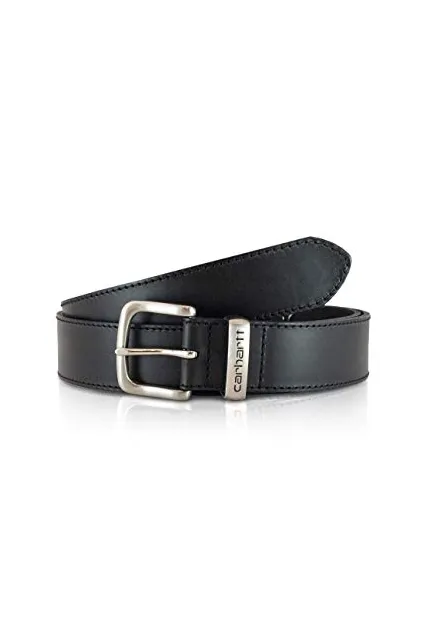 100% Leather Buckle closure Burnished belt in full-grain tooled leather Single-prong harness buckle Logoed metal keeper Saddle stitching 1.5" wide Imported