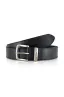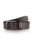 100% Leather Buckle closure Burnished belt in full-grain tooled leather Single-prong harness buckle Logoed metal keeper Saddle stitching 1.5" wide Imported