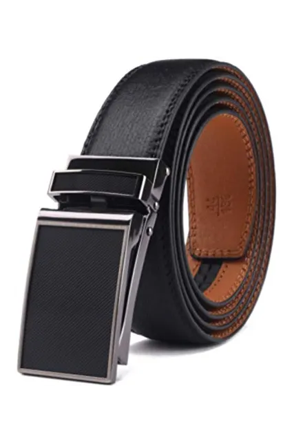 Genuine Leather belt, Exact fit by Cutting for needed size, Innoviative effortless design, Width 35MM, 1 3/8" EASY TO USE: CREATIVE EFFORTLESS SOLUTION, lifting the front-side of buckle to get the belt sliding through, and releasing to lock the belt, completely simple. Size Adjustalbe: Easy to customize the belt size, just need to remove the belt buckle, and cut the strap at needed size, then assembling it back to get perfect fit. To avoid useless by too short, just buying a bigger size. DURABILITY: Strap- Genuine Leather, flexible but firm; Buckle - Zinc alloyed with high quality coating for scratch resistance; GIFT IDEA: Stylish design, packed in an elegant gift box, so nice to give to your family or friend as a gift, and you can buy a little bigger, so that the user can easily cut to need fit size. GUARANTEE: 100% guarantee available. Any product issue makes you dissatisfy with this belt within the GUARANTEE PERIOD, let us know and we will make it right, Full Refund or a Free Replacement, whichever you prefer.