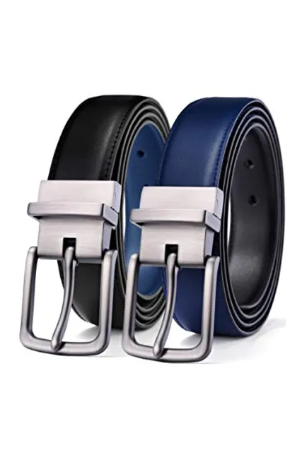 one Genuine Leather Belt Width 1 1/4", Removable buckle for cut to fit; REVERSIBLE—Paying one belt but getting two! So easy to reverse the belt from one side to another, thus you can change from black to brown and vice versa to match different dresses, specially during long travelling; Exact Fit: Full range of sizes to select to get exact fit, suggesting select 1 size bigger(2") than you waist size for needed adjustability. however, just in case too big, it is easy to remove the buckle and cut the strap short to needed size. DURABILITY: Strap-Genuine Leather with Micro Fabric Solution, Buckle -Zinc Alloy with high quality decoration for scratch resistance, it provides a maximum endurance for your daily use, GIFT BOX:Stylish, attractive and stable, it was packed in an elegant box for protection and also enable it to be gives as a niece gift to your friends, family and colleges. GUARANTEE:100% guarantee available. Any product issue makes you dissatisfy with this belt within the GUARANTEE PERIOD, let us know and we will make it right, Full Refund or a Free Replacement, whichever you prefer.