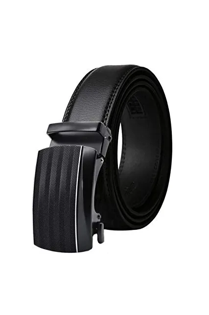 TRIM TO FIT - You can trim the strap length by yourself to fit your size if the belt strap is too long for you. NO MORE HOLES - West Leathers's Fashion Ratchet Belt provides 38 unique adjustments for a superb comfortable fit. Easy removable buckle allows you to cut the belt to your ideal size to give a primmer and custom tailored appearance! EASY USE - Just slide the belt into the buckle and pull the belt through, the buckle simply auto locks the belt, to release the belt, gently push the lever on the side of the buckle and lock will snap. Simple, smooth and sleek! MAXIMUM DURABILITY - Leather strap is a bit wider than 1 2/5" presenting the perfect look of a fine, genuine leather quality belt, complemented with an HIGHLY FASHIONABLE stylish, buckle that is elegantly designed with class. Scratch resistant buckles made to last. GIFT BOX - Make a big impression! Enclosed in a lovely, attractive gift box.