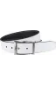 98% Leather/2% Zinc Imported Hand Wash Reversible to wear as black or white color sizes 32-42 Classic styling and details