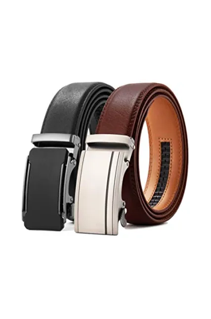 Ratchet Click Belt 2 Packs with Sliding Buckle 1 3/8" in Gift Set Box - Trim to Adjustable Perfect Fit