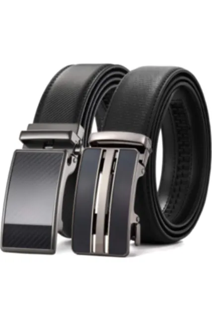 Ratchet Click Belt 2 Packs with Sliding Buckle 1 3/8" in Gift Set Box - Trim to Adjustable Perfect Fit