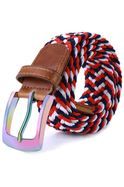 Woven stretch braided belt,elastic fabirc strip and zinc-alloyed buckle,width 1 3/8" Always-Fit: This woven stretch braided belt enable the buckle lock in any position of the strip, thus get the perfect tightness and exact fit on your waist; Comfortable: The material of elastic fabric provides a smooth and limitless adjustment for the perfect tightness on your waist, you feel not only holding up the pant, but also embraced by the arms; Stylish-Mutilcolors for buckles, matching with muticolors of strips, very stylish to match your jeans, streetwears or golf wears Etc… Gift Idea-It is packed in an elegant box, just in case you need to give it to your lover, family members or friends as a gift. GUARANTEE: 100% guarantee available. Any product issue makes you dissatisfy with this belt within the GUARANTEE PERIOD, let us know and we will make it right, Full Refund or a Free Replacement, whichever you prefer.