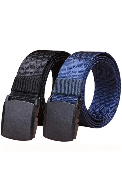 One purchase for 2 pack nylon belts. Premium nylon webbing, lightweight, soft, flexible, sturdy and durable, sweat absorption and dry fast. Suitable for daily wearing with all pants, and outdoor heavy duty work or sports. A good gift for your friend and relatives! NON-METAL BELT: Well-designed men's nylon web belt with YKK plastic buckle. Travel-friendly Non-Metal construction, Nickel Free, Non-Allergic. Allow you to be able to go through a metal detector or airport security without having to take it off. MILITARY TACTICAL BELT: Strong enough to withstand 500Kg weight no deformation. Ideal for police, firefighters, CCW, security guards, electricians and utility workers in need of a great duty belt to carry tools or weapons. Also great for paintball and airsoft gear! ADJUSTABLE WEBBING BELT: 100% Nylon web belt, 1.5 inch wide belt. Holeless belt and removable buckles that it's easy to trim it to size. Belts for men waistline girth below 42 inch. Lifetime guaranteed refund policy. If any problem of these nylon web belts, don't hesitate to contact with us. We promise to provide you a satisfactory solution. HAPPY DAY!