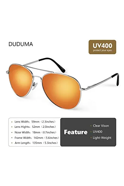This fits your . Make sure this fits by entering your model number. P.when("ReplacementPartsBulletLoader").execute(function(module){ module.initializeDPX(); }) UV400 PROTECTION-Lenses block 99% or 100% of UVB and UVA rays.UV 400 indicates an eye protection item that has been optimized to prevent eye exposure to both UVA and UVB radiation. One of the biggest differences between UV 400 protected items as compared to other items that protect against the sun's radiation is the fact that UV 400 protected items are capable of blocking light rays as small as 400 nanometers. REVO LENS-sunglasses are made with the most high quality polycarbonate lenses, which are ultra lightweight and shatterproof. Revo technology is made with even lighter weight material and are even more unbreakable. They are impact resistant and offer perfect clarity of vision. Also, Revo lenses are scratch and impact resistant, offering 100% UV protection. HIGH QUALITY FRAME - Made with only the highest quality materials, these sunglasses were constructed using special design techniques in order to ensure durability and avoid breakage while engaging in sports and recreational activity. LIFETIME BREAKAGE WARRANTY ON FRAME &LENS-All Duduma Sunglasses is backed by a lifetime warranty. It does notmatter whether you come across an unforeseen obstacle, miscalculate a turn on a trail, Whatever the reason, you can have Lifetime Breakage Warranty on Frame & Lens 30 DAY MONEY BACK GUARANTEE-100% satisfaction guaranteed. That is our promise. So, if you're not completely happy with your purchase within the first 30 days, just let us know. 【In order to give the best shopping experience to customers, the sunglasses cases were updated. The black cases will no longer to use. The black case and the new case will send to you at random during the transition period.】