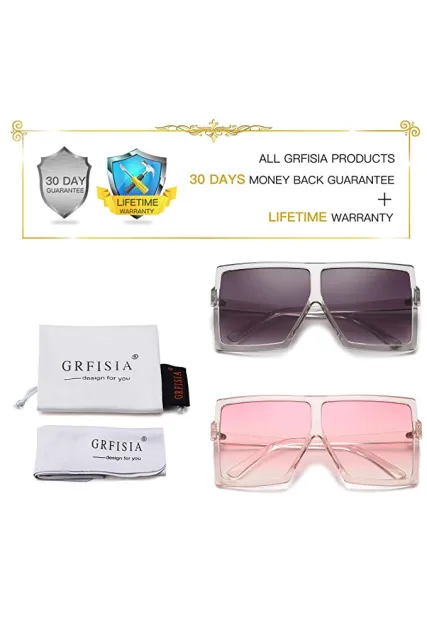 plastic frame anti-reflective lens non-polarized Lens width: 2.56 inches PROTECTION – GRFISIA anti-glare lenses can block 100% of both UVA and UVB radiation. UV400 rated sunglasses is essential to filtering out sunlight reflected glare and protecting your eyes against long term UV damage when you go out. SYLTE -GRFISIA Oversized Square Sunglasses is fashion style brand designer,It is suitable for any face, show your unique and fashion.The most fashionable design, the perfect cover your eyes. SUITABLE - Suitable for shopping, parties, travel or other outdoor enthusiasts. It is also gift packaged ready, making it a wonderful yet practical gift idea for friends and family!