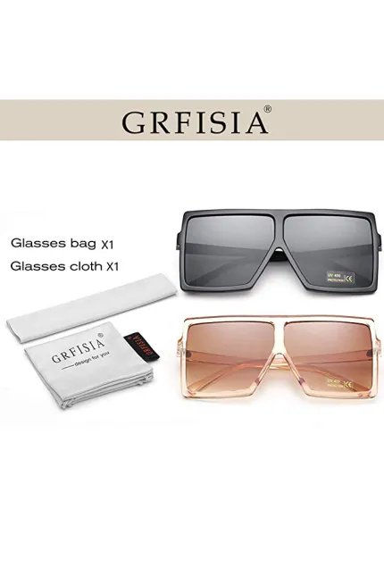 plastic frame anti-reflective lens non-polarized Lens width: 2.56 inches 2.24" high 2.56" wide PROTECTION – GRFISIA anti-glare lenses can block 100% of both UVA and UVB radiation. UV400 rated sunglasses is essential to filtering out sunlight reflected glare and protecting your eyes against long term UV damage when you go out.