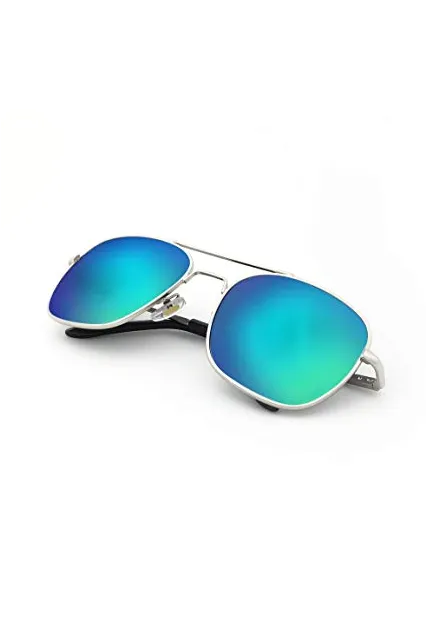 Square Aviator - Silver Frame / Green Mirror Lens (Square)