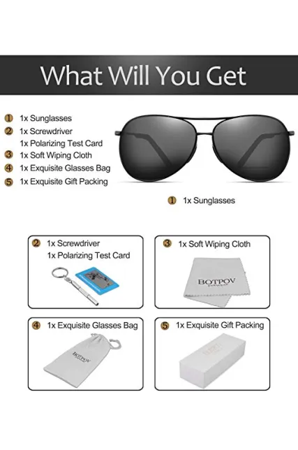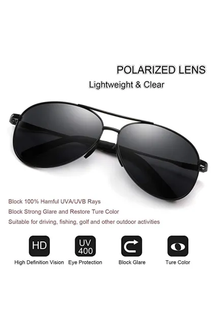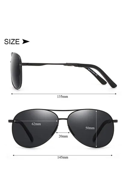 metal frame Composite lens polarized Lens width: 62 millimeters Bridge: 0.78 inches Arm: 5.3 inches TAC POLARIZED LENS – These aviator sunglasses are using 9-layer polarized lenses with the double UV blocking coating and polarizing film that keep your eyes fully protected against harmful UV, UVA/UVB rays! Water, snow, fishing, while driving or at the beach, they will help you have good vision!