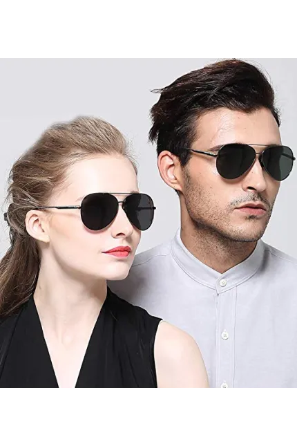 metal frame Composite lens polarized Lens width: 62 millimeters TAC POLARIZED LENS – These aviator sunglasses are using 10-layer polarized lenses with the double UV blocking coating and polarizing film that keep your eyes fully protected against harmful UV, UVA/UVB rays! Water, snow, fishing, while driving or at the beach, they will help you have good vision! HIGH QUALITY MATERIALS – These classic style shades is made of high quality metal material with gloss plating surface, they are not just durable enough for long time using, but provides elegant looking . It is suitable as high fashion accessory and daily wear all year round. FLEXIABLE SPRING HINGE – High quality metal spring hinge was used to adept to different face style, no pressure on your head, bring you most comfortable wearing experience.