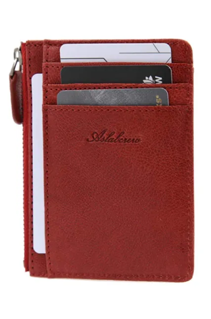 AslabCrew Minimalist Genuine Leather Zipper RFID Blocking Front Pocket Wallet, Slim Card Wallets