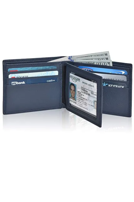 100% Leather Imported Spot Clean RFID BLOCKING: Our wallets have been tested for blocking at 13.56 MHz PREMIUM MATERIAL CONSTRUCTION : Superior cowhide leather masterfully sewed with durable and polyester fabric ensures long lasting durability ELEGANT & PRACTICAL GIFT: Packaged in a beautiful box, this executive leather wallet is a perfect gift for him