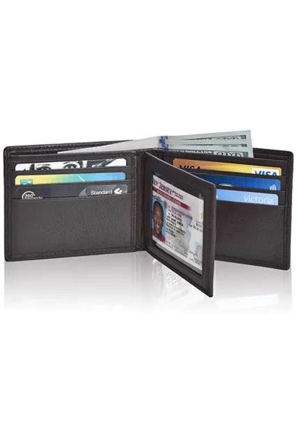 100% Leather Imported Spot Clean RFID BLOCKING: Our wallets have been tested for blocking at 13.56 MHz PREMIUM MATERIAL CONSTRUCTION : Superior cowhide leather masterfully sewed with durable and polyester fabric ensures long lasting durability ELEGANT & PRACTICAL GIFT: Packaged in a beautiful box, this executive leather wallet is a perfect gift for him