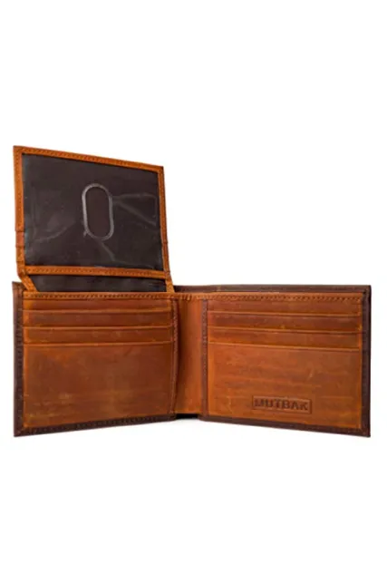 Leather Bifold Wallet with RFID Blocking Lining for each of 11 Card Slots plus ID Window Provides Places and Protection for Every Credit Card, Business Card, and ID Card You Will Need. Split Billfold Area to Separate Large and Small Bills or Money from Receipts Highest Quality Top-Grain Vegetable Tanned Leather Available, Soft and Builds Character as it Ages Flip up ID Window with Thumb Hole - Wallet Measures in at 4 3/8" X 3 3/8" X 3/4" One-year unconditional warranty for all Mutbak products. Here is what some of our customers have to say: "The wallet successfully blocks the RFID card it amazed me a bit on how well it worked.", "Overall, I really like this wallet. It met my need for something small, but pleasing to the eye", "Excellent quality - fantastic workmanship!"