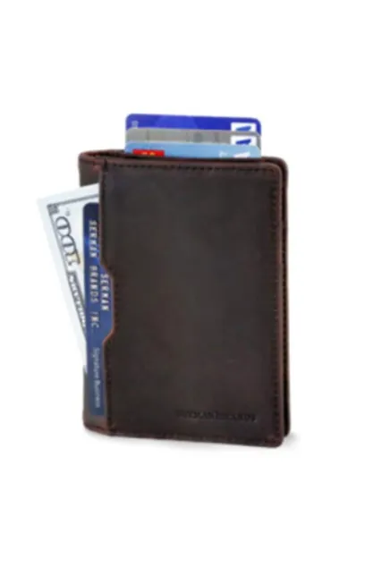 PATENT PENDING - 12 MONTH WARRANTY, The SERMAN BRANDS Warranty covers any factory defects as a result from the manufacturing process of the product. SAFETY. PRIVACY. SECURITY - Our minimalist wallets for men are equipped with advanced RFID Blocking Technology, a unique metal composite, engineered specifically to block 13.56 MHz or higher RFID signals and protect the valuable information stored on RFID chips from unauthorized scans SLIM AND STYLISH – Bifold is made with the finest full grain genuine leather that develops a richer texture and establishes stronger character and color with use. Designed Quick Access ID Windows, Best Fits 8-10 cards plus US bills, and a minimal Pull-tab design to reduce bulk - Wallet Size: 4.25" in. x 3.1" in. .4" in. HOW IT WORKS- At last! A slim travel wallet that will meet your everyday needs. The SERMAN BRANDS slim wallet is equipped with a front pocket for your daily card, 4 quick draw interior pockets, and a smart strap that lets you get to your everyday credit cards. Most currencies fit easily with a half fold, keeping your essentials together in a thin, slim, & sleek fashion. NO HASSLE MONEY BACK GUARANTEE - We know you'll love our mens & womens wallets as much as we do, if for any reason you're not 100% SATISFIED, let us know and our customer service team will make things right: full refund or a free replacement, whichever you prefer.