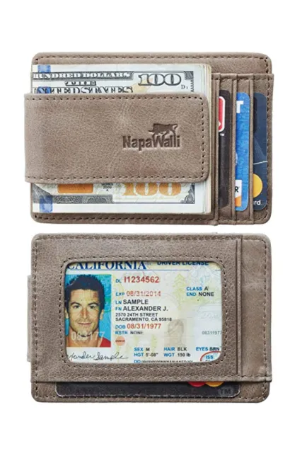 YOU WORK HARD FOR YOUR MONEY: That’s why we use 4 Rare Earth Magnets (instead of 2) to hold on to your cash. We tested the rest and now you can buy the best. Rare-Earth magnets were developed in the 70’s and are made from alloys of rare earth elements. They are the strongest type of permanent magnets. WE MADE THIS ONE OURSELVES: After testing the competition we knew we had to develop our own Money Clip. Finding the right factory wasn’t easy but once the prototype was completed we knew we had a winner using Full Grain Waxed Leather, detailed stitching and secure card slot holders. SIZE and FEATURES: The wallet is 4”x 3” and fits nicely in your front pocket. Comes with 3 card slots, 2 larger slots and an I.D. holder RFID Blocking Wallet: Tested for 13.56 MHz Frequency in which the credit cards operate.125 KHz Proximity Cards, RFID signals are NOT blocked; 1 year replacement guarantee
