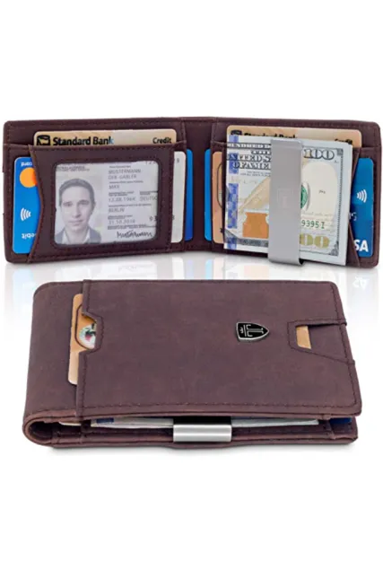 ✅ FUNCTIONAL & SLIM – Travando’s Wallet offers 9 card pockets: 1 easy-access front pocket and 8 inner pockets. The slim wallet is ideal for carrying business cards, credit and debit cards, bills etc.. The outside notch allows you to push out the cards easily ✅ INDUSTRY-TESTED SECURITY - Tested by an independent German quality control institute. Our wallets block the 13.56 MHz band and protect against data theft by RFID scanners. ✅ INTEGRATED MONEY CLIP - The metal money clip allows you to clip several bills inside your wallet ✅ REFINED & STYLISH - Designed in Germany to best combine elegance, quality and convenience. Travando minimalist wallet is crafted with premium materials and great attention to detail ✅ SLIM DOWN YOUR POCKET – We kept the dimensions of our slim wallet to 4.13" in x 2.3" in x 0.4" in. It will fit in your pocket perfectly without bulging out