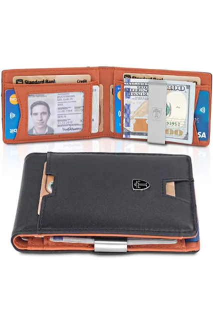 ✅ FUNCTIONAL & SLIM – Travando’s Wallet offers 9 card pockets: 1 easy-access front pocket and 8 inner pockets. The slim wallet is ideal for carrying business cards, credit and debit cards, bills etc.. The outside notch allows you to push out the cards easily ✅ INDUSTRY-TESTED SECURITY - Tested by an independent German quality control institute. Our wallets block the 13.56 MHz band and protect against data theft by RFID scanners. ✅ INTEGRATED MONEY CLIP - The metal money clip allows you to clip several bills inside your wallet ✅ REFINED & STYLISH - Designed in Germany to best combine elegance, quality and convenience. Travando minimalist wallet is crafted with premium materials and great attention to detail ✅ SLIM DOWN YOUR POCKET – We kept the dimensions of our slim wallet to 4.13" in x 2.3" in x 0.4" in. It will fit in your pocket perfectly without bulging out