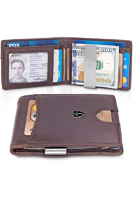 ✅ FUNCTIONAL & SLIM – Travando’s Wallet offers 9 card pockets: 1 easy-access front pocket and 8 inner pockets. The slim wallet is ideal for carrying business cards, credit and debit cards, bills etc.. The outside notch allows you to push out the cards easily ✅ INDUSTRY-TESTED SECURITY - Tested by an independent German quality control institute. Our wallets block the 13.56 MHz band and protect against data theft by RFID scanners. ✅ INTEGRATED MONEY CLIP - The metal money clip allows you to clip several bills inside your wallet ✅ REFINED & STYLISH - Designed in Germany to best combine elegance, quality and convenience. Travando minimalist wallet is crafted with premium materials and great attention to detail ✅ SLIM DOWN YOUR POCKET – We kept the dimensions of our slim wallet to 4.13" in x 2.3" in x 0.4" in. It will fit in your pocket perfectly without bulging out