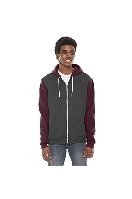50% polyester 8.2 oz./yd2, 36/1's fabric 50% polyester / 50% combed cotton hooded with white finished plyester drawcord metal zipper 1x1 rib cuffs and bottom band