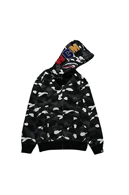 Big Mouth Shark Ape Bape Camo Mens Women Hoodies Sweatershirt Casual Zip Up Hip-Hop Funny Tops