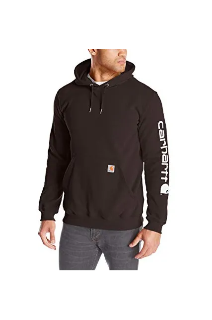 Machine Wash Pullover sweatshirt in midweight cotton blend featuring drawstring hood and logo screenprint at sleeve Kangaroo pocket with logo tag Adjustable drawstring on hood Banded trims at hem and cuffs