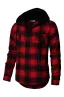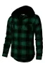 100% Polyester Button closure Designed by Korea Style No. #CMOJA0105 Features 2 Front Chest Pockets, Detachable Drawstring Hood, Long Sleeves, Basic Collar, Button Down Front, High-Low Hemline. And Color contrast in plaid check and solid woven which makes you look more casual and cooler. Please refer to our image for the size wise. / The color could be slightly different between on the screen and in practice. Machine Wash with low heat dry / Hand Wash Recommended