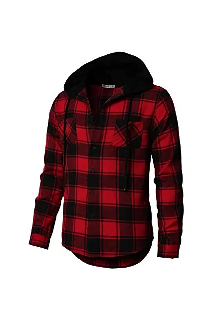100% Polyester Button closure Designed by Korea Style No. #CMOJA0105 Features 2 Front Chest Pockets, Detachable Drawstring Hood, Long Sleeves, Basic Collar, Button Down Front, High-Low Hemline. And Color contrast in plaid check and solid woven which makes you look more casual and cooler. Please refer to our image for the size wise. / The color could be slightly different between on the screen and in practice. Machine Wash with low heat dry / Hand Wash Recommended