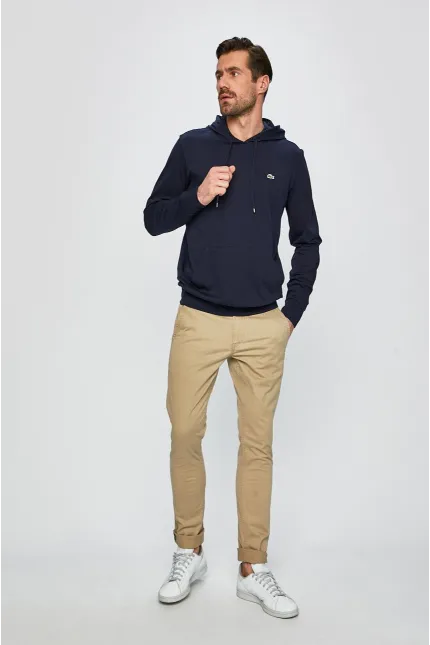Shell: 100% Cotton Imported Pull On closure Machine Wash Pullover with adjustable drawstring hood Unlined hood Kangaroo pocket Embroidered Lacoste crocodile logo at chest