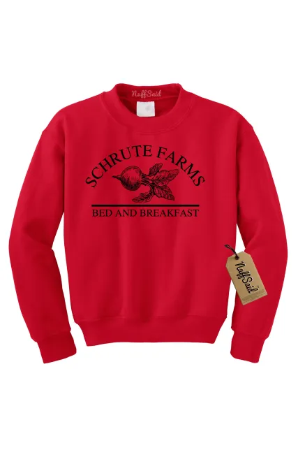 Schrute Farms Beets Bed and Breakfast Sweatshirt Super Awesome and High Quality - Printed in the USA 50/50 Blend - Super Soft and Comfy Unisex Fit (Typically Runs Large for Women) Holds up wash after wash WARNING: NuffSaid Brand SOLD ONLY By Authorized Seller POWERDEALZ via Amazon - Anyone else is unauthorized and is not selling the same item