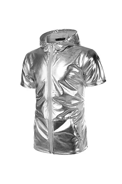 95%Polyester 5%Spandex Imported Zipper closure Hand wash(Washed with cold water) Shinny Metallic paint Fabric(non breathable fabric)/Mild elastic fabric Hooded/Zipper/Metallic/Short Sleeve Hoodie Night Club/Rap/Hip-Hop Show/Stage Performance Show/Dance/Party/Disco/Christmas Party Cosplay/Halloween/Performance/ Color Disclaimer : Due to monitor settings, monitor pixel definitions, we cannot guarantee that the color you see on your screen as an exact color of the product. We strive to make our colors as accurate as possible. However, colors are approximations of actual colors¡£If you have a problem£¬Please contact me in time and I will resolve your issue within 24 hours