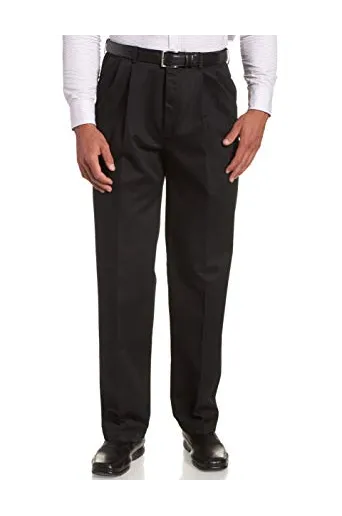 Haggar Men's Work-To-Weekend Khaki No-Iron Pleat-Front Pant with Hidden Expandable Waist