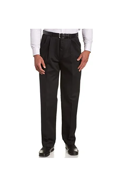 100% Cotton Pleat-front pant with side-slant pockets featuring hidden expandable waist and button-through welt pockets at back No-iron design Classic fit