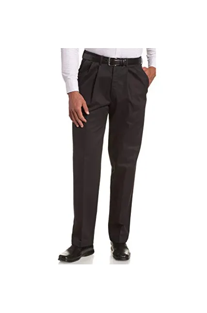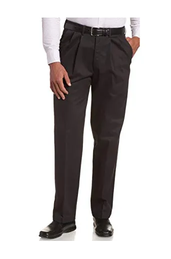100% Cotton Machine Washable Pleat-front pant with side-slant pockets featuring hidden expandable waist and button-through welt pockets at back No-iron design Classic fit