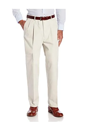 Haggar Men's Work-To-Weekend Khaki No-Iron Pleat-Front Pant with Hidden Expandable Waist