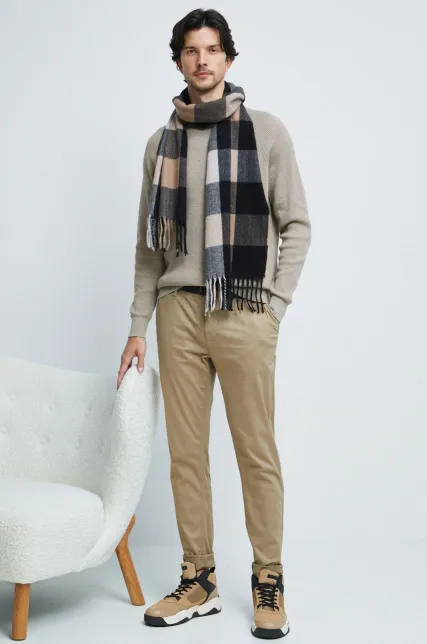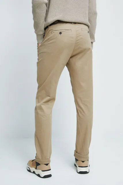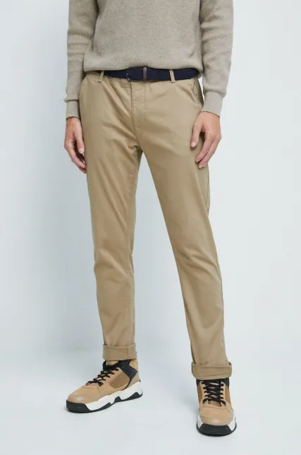 100% Polyester Imported Machine Wash Flat-front dress pant featuring off-seam side pockets and button-through rear pockets Rigid waistband. 17inch leg opening, straight fit through the hip and leg
