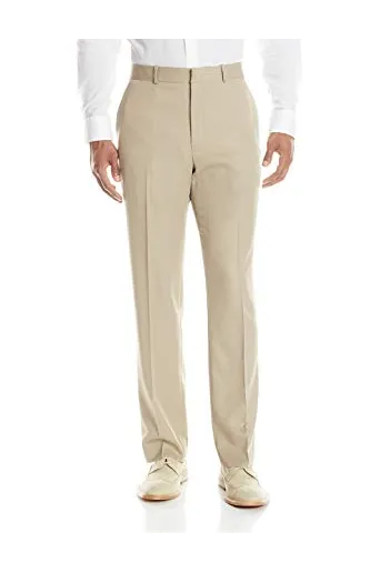 100% Polyester Imported Machine Wash Modern-fit dress pant with flat front featuring tailored straight leg Slanted side pockets and button-through welted back pockets Zip fly with hook closure Wicking properties No iron