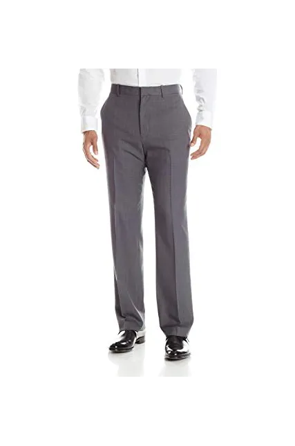 100% Polyester Imported Machine Wash Modern-fit dress pant with flat front featuring tailored straight leg Slanted side pockets and button-through welted back pockets Zip fly with hook closure Wicking properties No iron