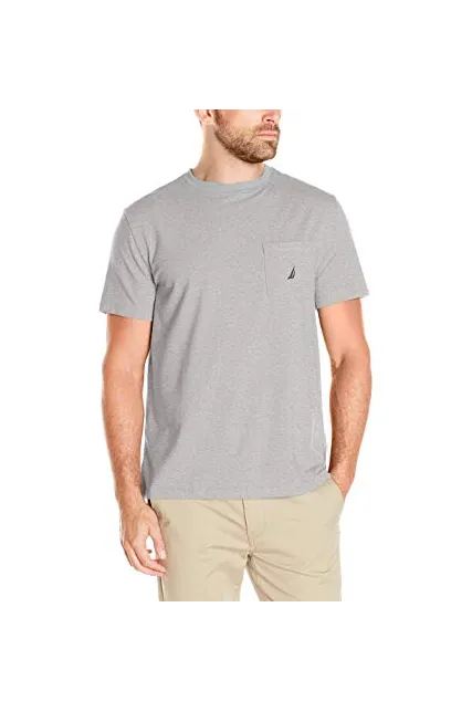 95% Cotton, 5% Spandex Imported Pull On closure Machine Wash Casual crew-neck styling Short sleeves; pocket at chest with Nautica logo One fit