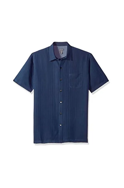 66% Rayon, 34% Polyester Imported Button closure Machine Wash Temperature activated cooling zone- woven with specialized yarns that are cool to the touch, a patch on the upper portion of this shirt helps your back breathe easy without overheating Vented sides Point collar
