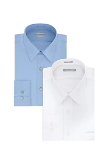 Wrinkle Free: Developed for less wrinkles and easy care Fitted Fit: Roomier through the shoulders, chest and arms, with a tapered waist Point Collar: Classic collar thought to lengthen the face & allows for tie knot variety; can be worn with or without neckwear. Adjustable Cuff: Two button positions allow for a more customized, improved fit. Chest Pocket: Classic design holds all your essentials.