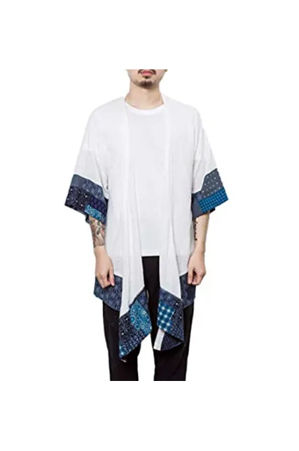 cotton and linen Made of cotton blends linen fabric, ultra comfortable, breathable and lightweight Design with Irregular hem and unisex loose fit cloak with solid color creates a relaxing accent, unique sleeve floral design plus loose version, show more both trendy and casual styles This open front cardigan could be worn with jeans or casual pants like the harem pants to reach a casual smart look or fashion style. No matter which style, it makes you catch the eyes in the crowd Great for summer, suits fo daily wear,home, street style,loungewear, hip-hop, party,festival,Halloween costume or some other casual occasions Machine wash. Note--As a size reference, here are the size measurement of our American model: Height: 6'0", Weight: 154 lbs, Chest: 38", Waist: 30", wears SIZE SMALL